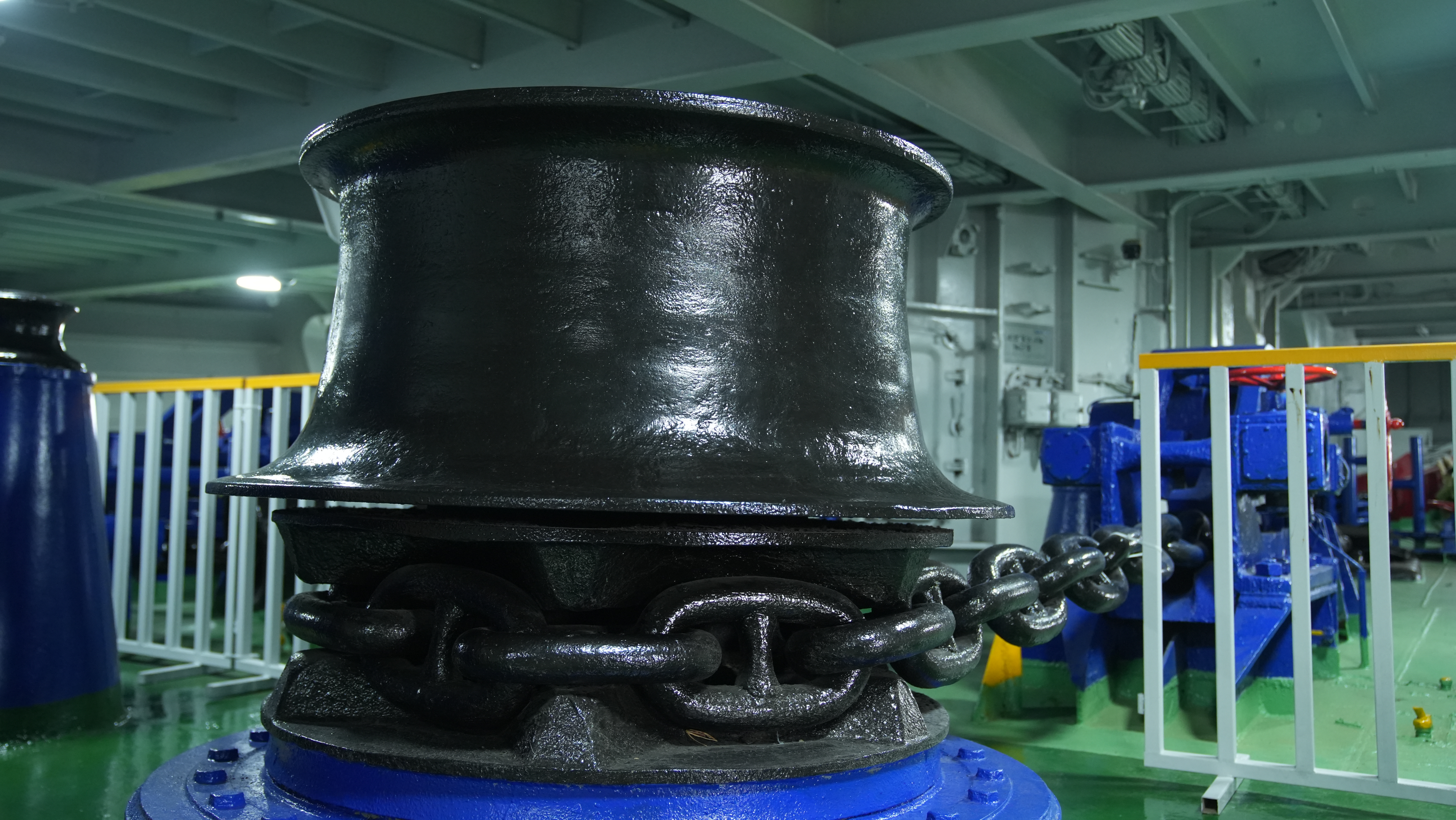 錨纜艙位于二甲艦艏,用于航母停靠、系纜和放錨等。艙內還設有76 火炮彈藥庫、原艦印刷廠、傾斜水兵艙和火箭式深水炸彈彈藥庫等。